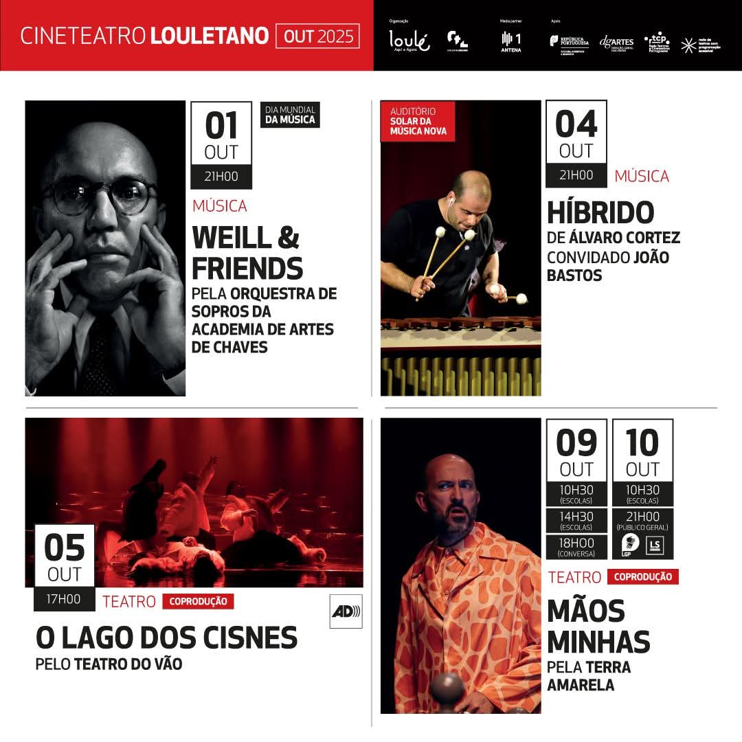 October arrives at Cineteatro Louletano with a vibrant schedule, where different artistic languages intersect in co-productions, premieres, and projects that reflect the thinking and originality of contemporary creation.