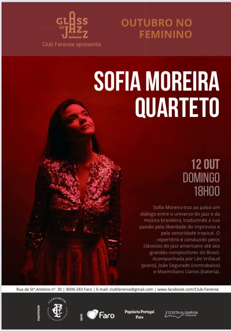 Sofia Moreira brings to the stage a dialogue between the worlds of jazz and Brazilian music, expressing her passion for the freedom of improvisation and tropical sounds. The repertoire ranges from American jazz classics to the greatest Brazilian composers. Accompanied by Léo Vrillaud (piano), João Segurado (double bass), and Maximiliano Llanos (drums).