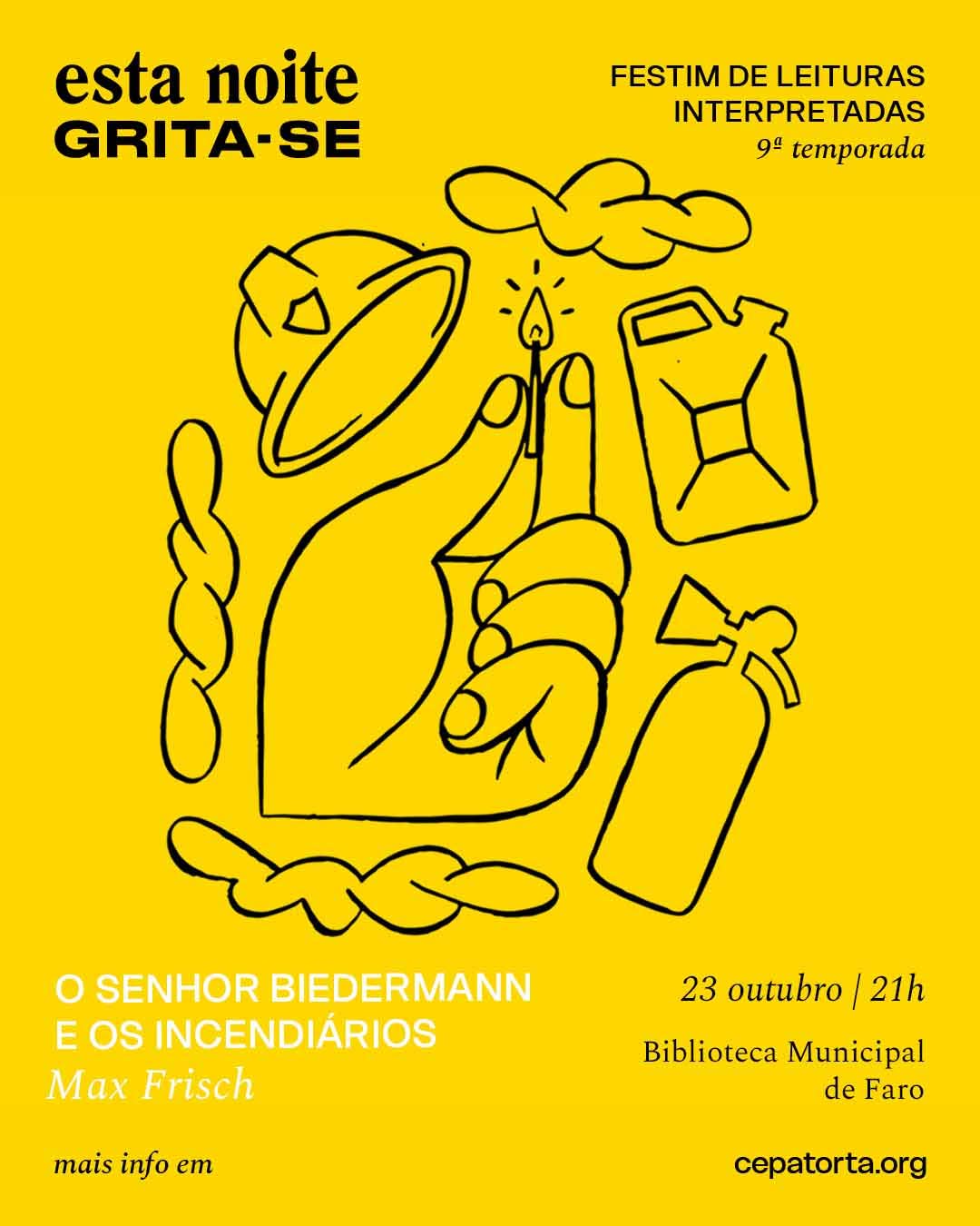 📖🎭The 9th edition of the "Esta noite grito-se" (This Night We Scream) cycle returns to the Faro Municipal Library for three sessions dedicated to staged readings. The series begins with the text "Mr. Biedermann and the Incendiaries" by Max Frisch, on October 23rd at 9:00 pm.